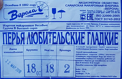 Перья "Верола" 450г *20шт/уп Группа В (г.Самара)Перья "Верола" 450г *20шт/уп Группа В (г.Самара) i